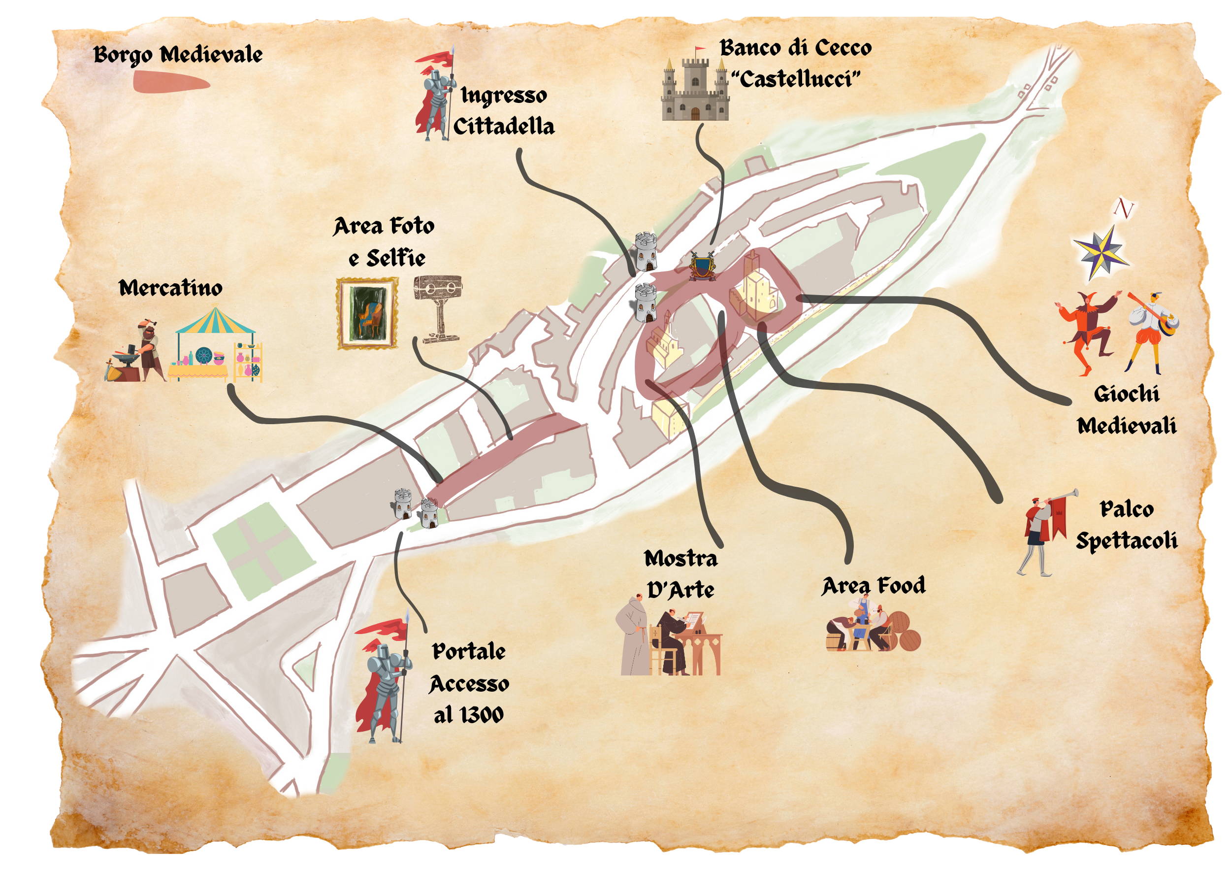 All'ingresso della cittadella ti imbatterai nel Banco di Cecco, dove potrai scambiare la tua pecunia moderna con i CASTELLUCCI, che potrai usare per i nostri giochi e provare a vincere uno dei nostri premi!